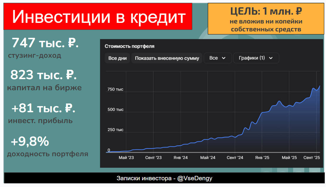 Всем привет! Продолжаю вести свой публичный эксперимент, где я поставил поставил себе ЦЕЛЬ - сформировать на бирже капитал в размере 1 млн. ₽ не вложив ни копейки собственных денег.