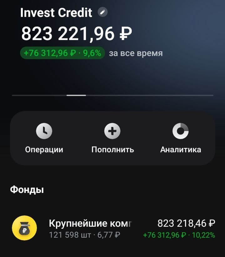 - Инвест. доход: +76,3 тыс. ₽. (прирост капитала за все время)