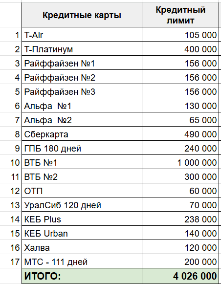 За почти три года стузинга у меня в арсенале 17 кредиток с общим кредитным лимитом +4 млн. ₽. + 3 стузинг-фермы у брокеров. Что приносит мне около 40-50 тыс. ежемесячно.
